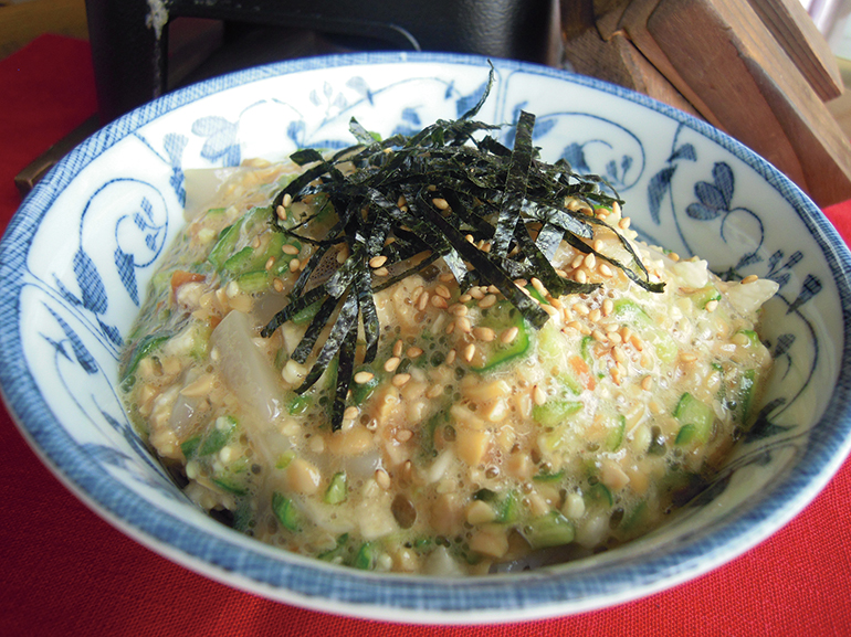 オクラ、山芋、納豆などのぬめり成分は、ムチンといって胃の粘膜を守り、タンパク質を無駄なく活用させ、疲労回復やスタミナ増強に大きな役割をします。これらはカリウムも豊富で、体内の塩分を排泄する役割があります。厚生労働省は4月から、食塩の摂取目標量を引き下げました(男性8g未満、女性7g未満)。日本人に多い生活習慣病の高血圧(脳卒中、心臓病、腎臓病につながる)予防の減塩対策のためにも、積極的に摂りたい食材です。